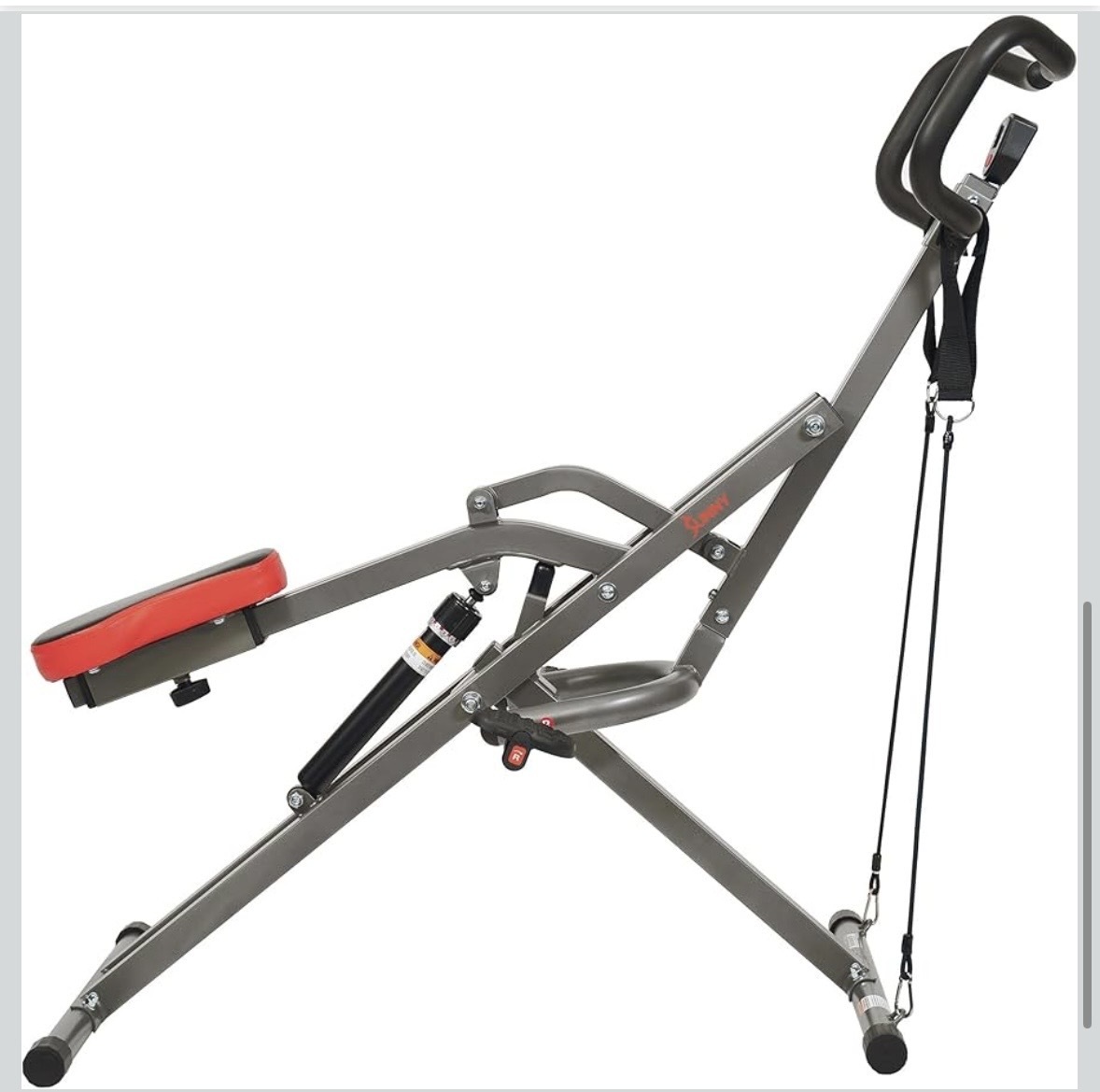 Sunny Health & Fitness Row-N-Ride Squat Assist Trainer, Foldable & Easy Setup Exercise Equipment w/Adjustable Resistance, Home Gym Training Machine for Arm, Glute & Leg Workout