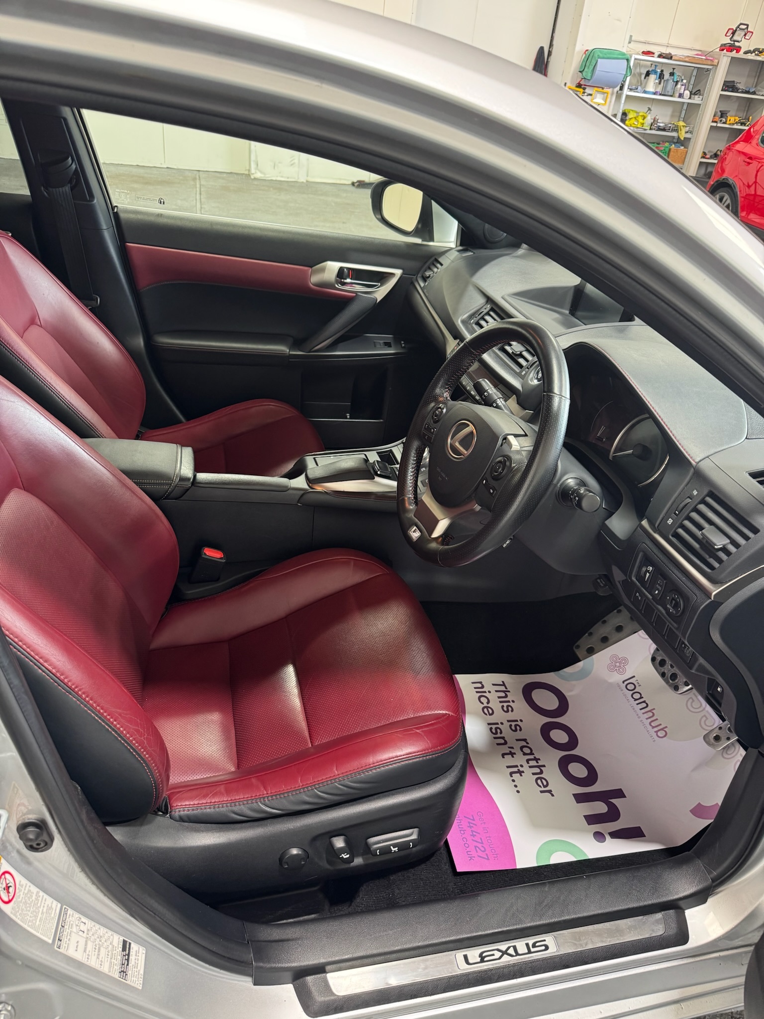 - Interior: Red leather seats