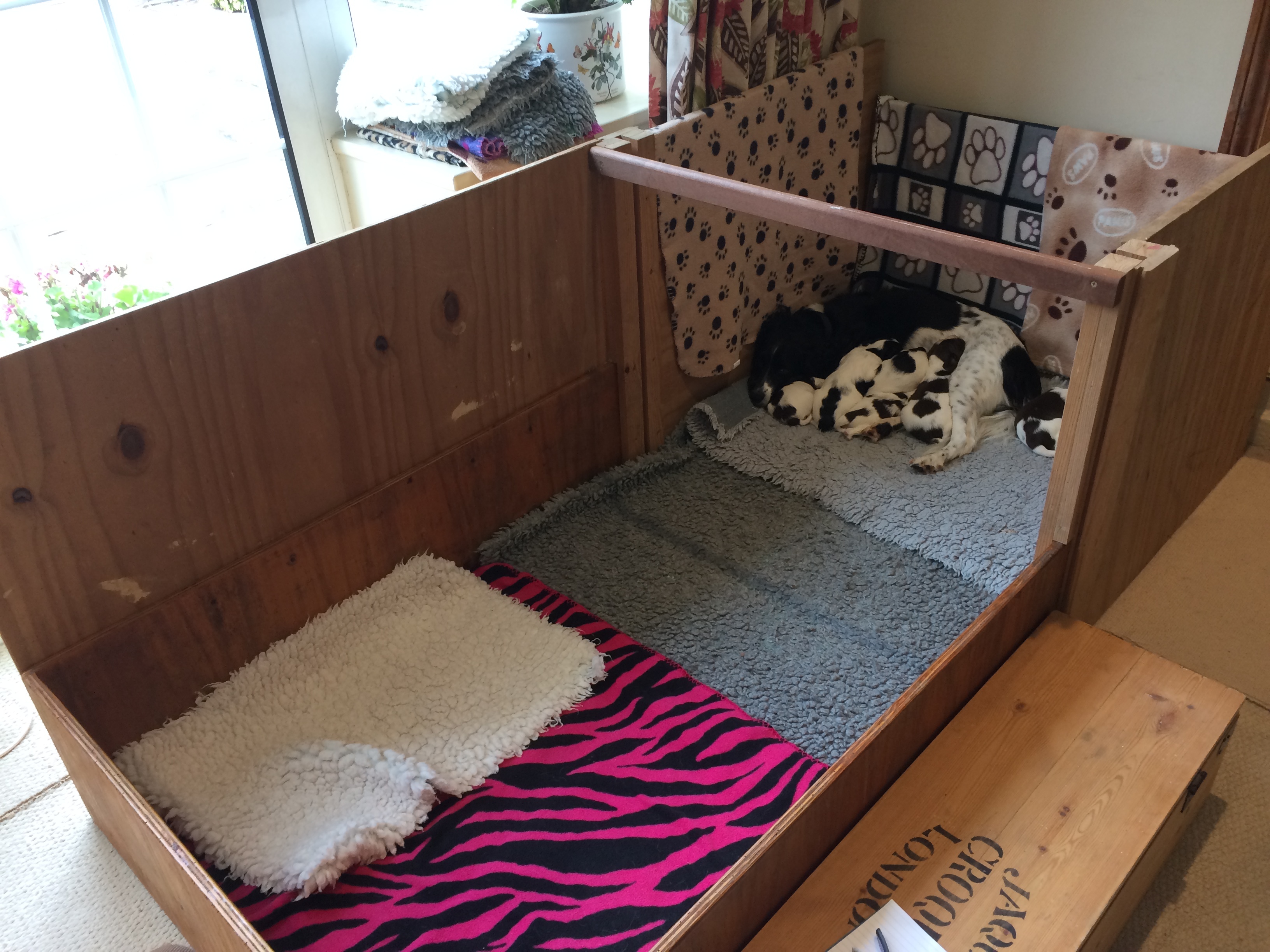 Puppy whelping box with extension