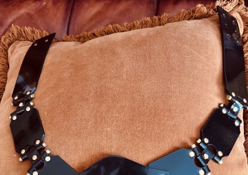 Genuine Yves St Laurent patent leather belt with antique gold stud detail. Bought in Italy. Excellent condition....