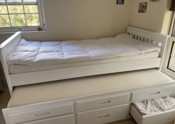 White single trundle bed with storage for sale from smoke free home. Can be used as a children's bed or for a spare...