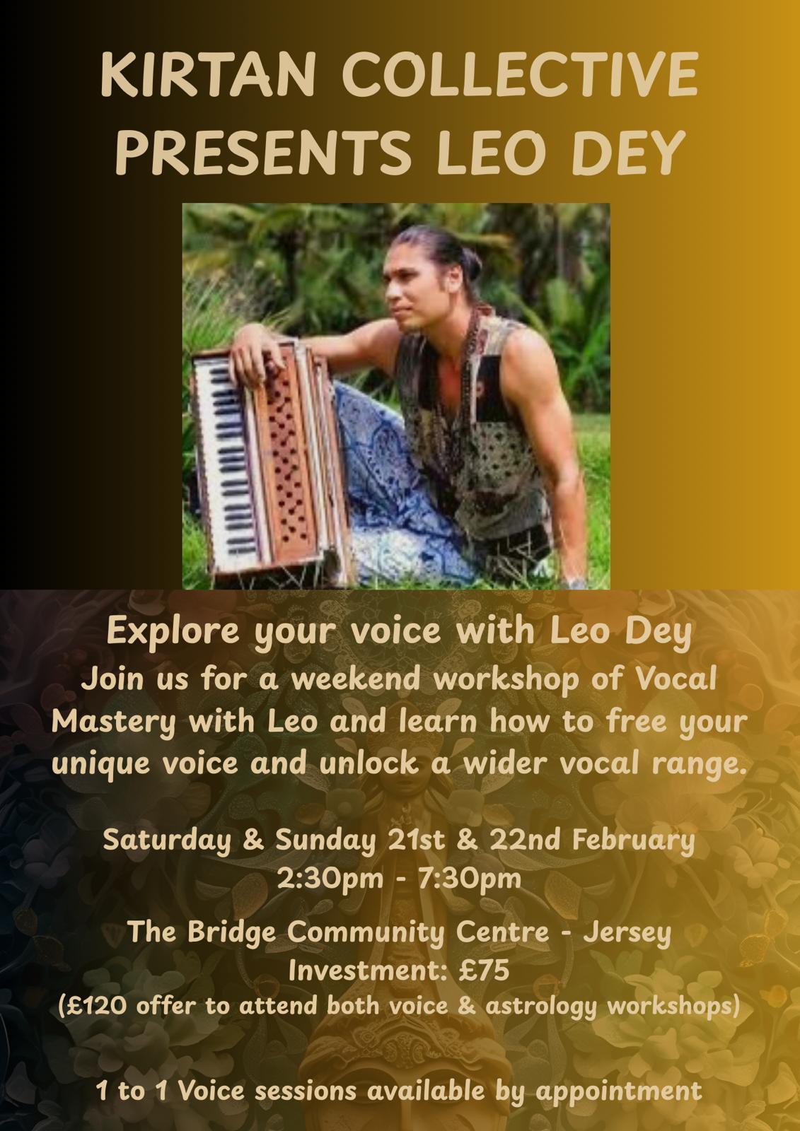 Leo Dey is offering a two day vocal mastery workshop. Sat 21st Feb & Sun 22nd Feb at 14.30-19.30 - £75 plus booking fee to attend both days!